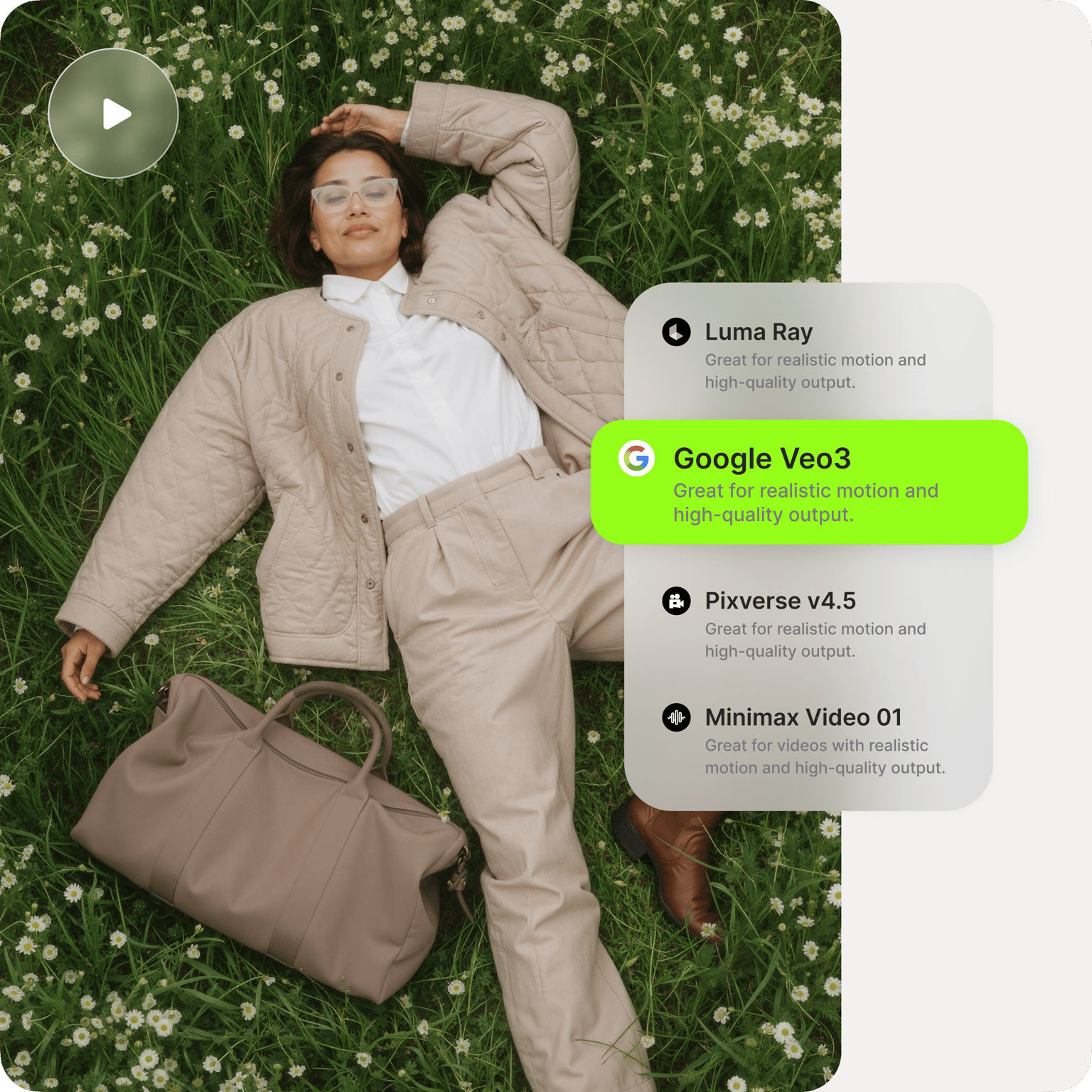 Get more than just feature lists. Our image-to-video model directory gives you practical insights into each model's strengths, limitations, and ideal use cases. Test the same image input across different models. With detailed breakdowns and a centralized AI playground, you can confidently choose a model for your project.