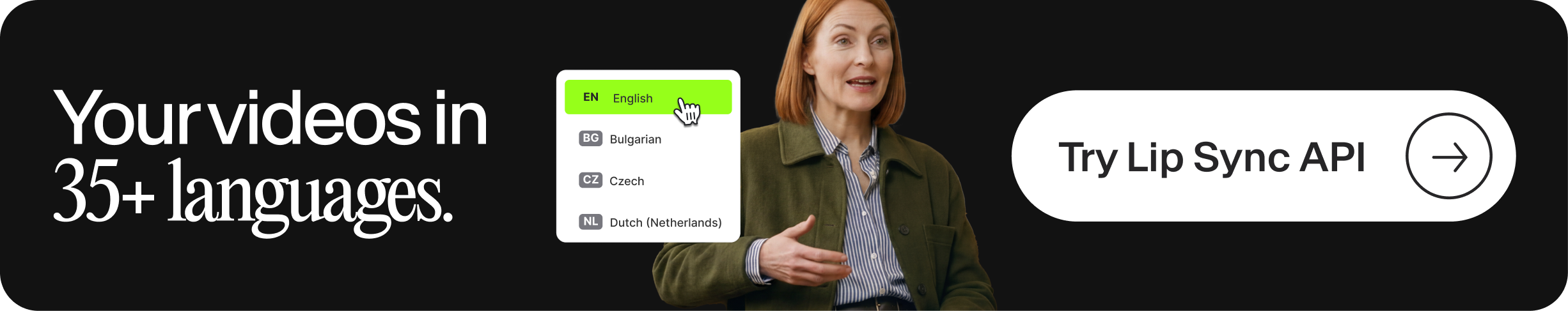 - Lip Sync API: sync translated audio to video in 35+ languages