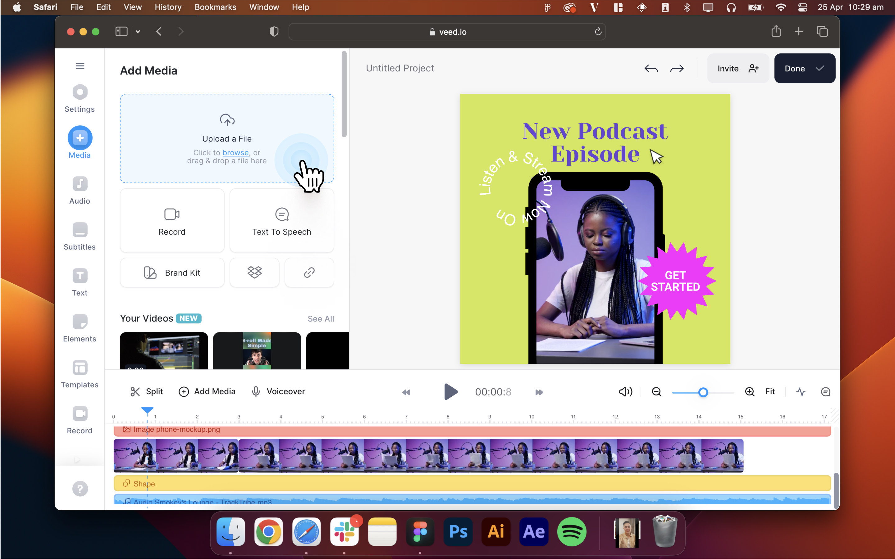 - Stock Library: VEED offers numerous templates, music, transitions, sound effects, and filters for free. This is helpful for the Mac users who don’t have a video to work with or want to add extra flair into their content.