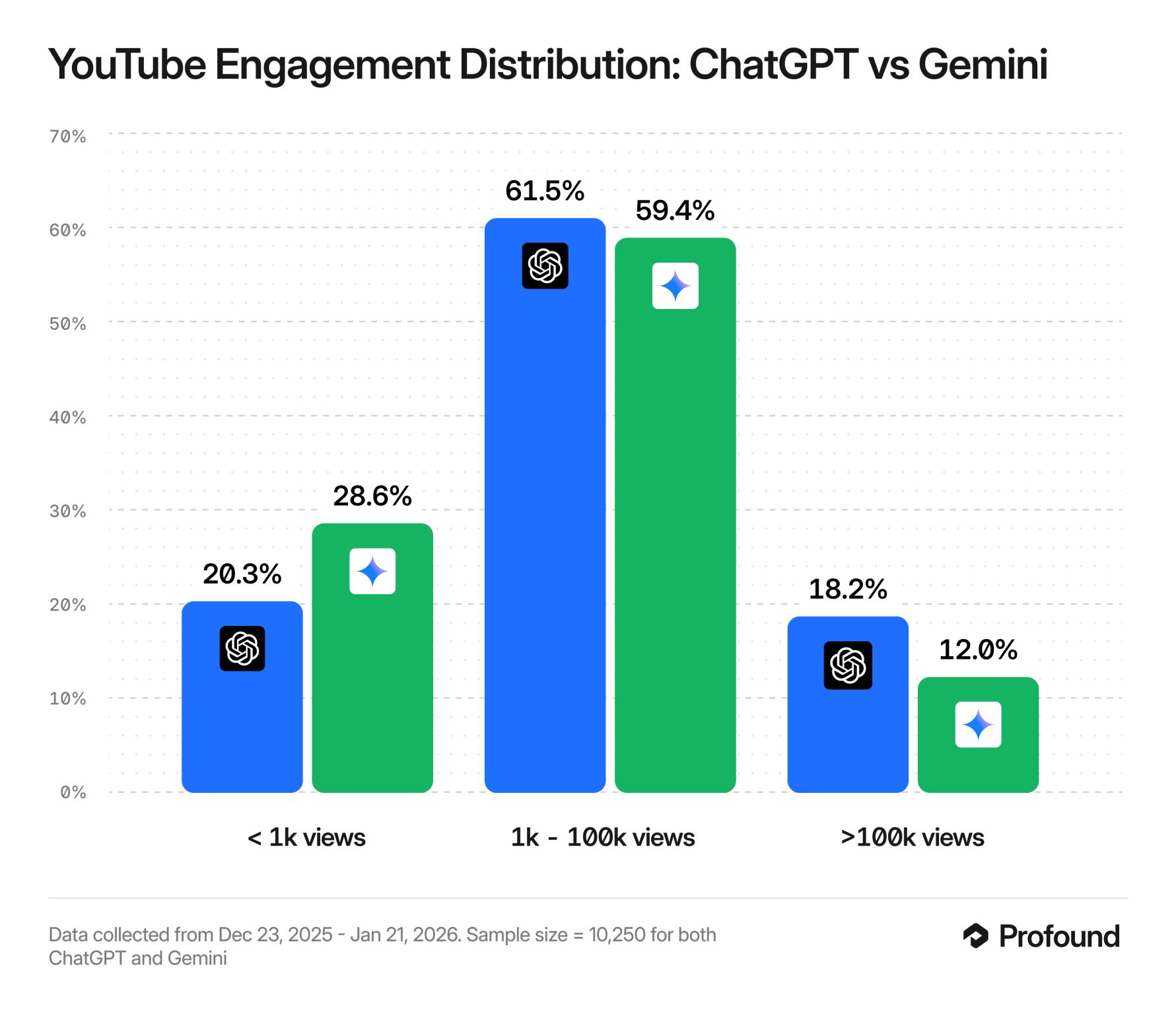 - Platform strategies differ: Optimize for both Gemini (engagement metadata, lower view counts) and ChatGPT (higher views, broader reach).