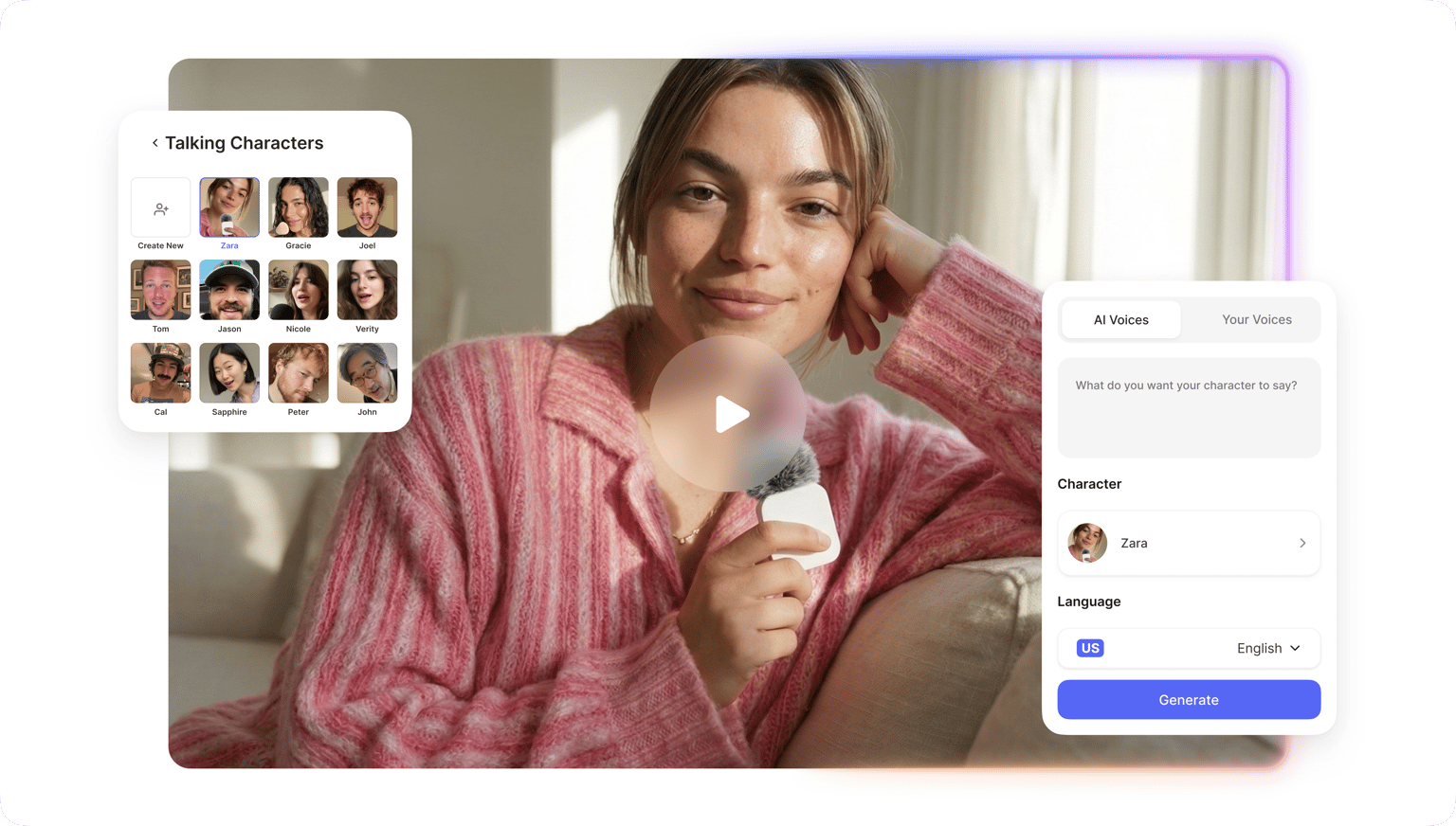 Make your avatar talk using our text-to-voice technology. Just type or paste a script to generate your AI animated avatar. Perfect for presentations, tutorials, or personalized video messages.