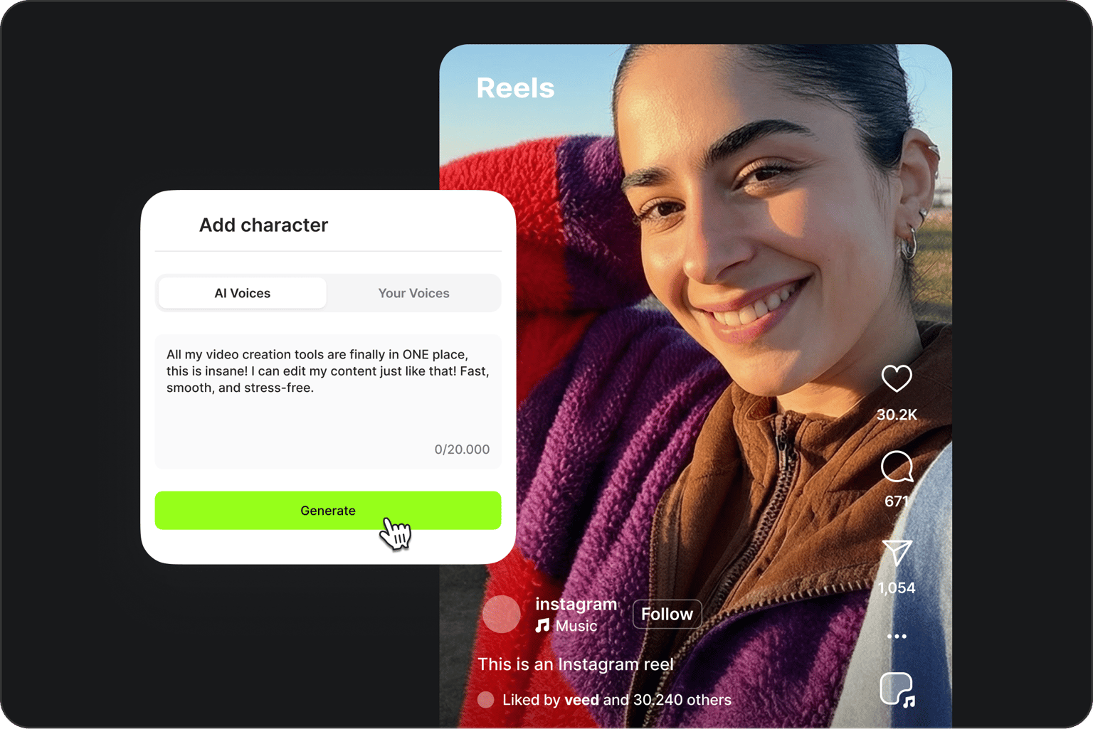 Need video content for Instagram, TikTok, and LinkedIn but don't have time for filming? Your social media team may be struggling to keep up with timelines, or execs might need to be on camera but have packed schedules. VEED's AI avatar generator changes the game. When trending topics hit your industry, you can now create talking videos in minutes. Just type your script and watch your avatar talk on screen, powered by our text-to-speech technology.