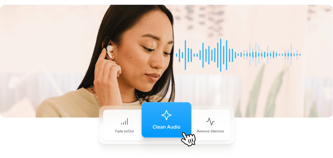 Give your audio a nice, crisp, and studio-quality output by using VEED’s one-click audio cleaner tool. You can make your recording sound like it’s been recorded in a studio room. No need to pay for a recording studio or install acoustic panels. Use VEED’s Clean Audio feature to make it sound like you’ve created your audio in a music studio! Powered by artificial intelligence and Dolby technology, our studio sound tool automatically detects background noise from your recordings. Get rid of sounds like static, traffic, breathing, or hissing sounds in one click! Plus, you can use our professional online video editor to further enhance your audio or create engaging videos to share your music with the world! Our one-click audio cleanup feature is available to premium subscribers. Check our pricing page for more info.
